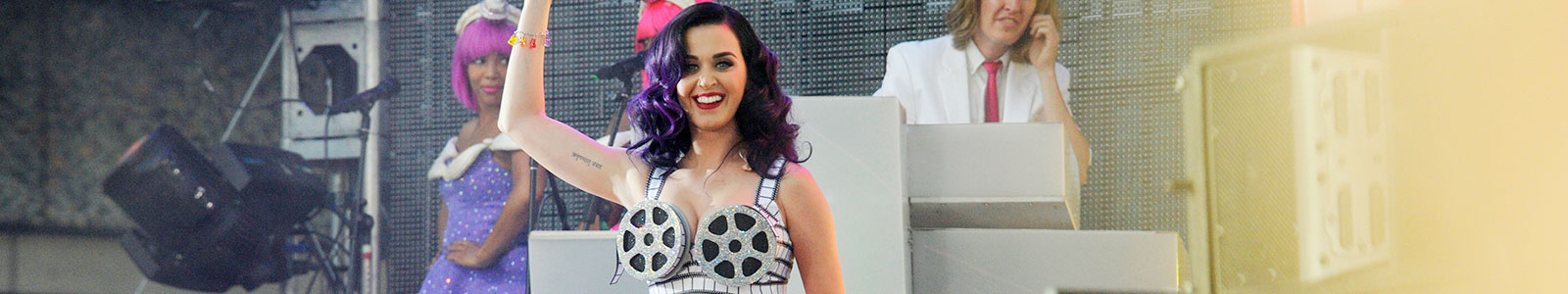 Katy Perry performs live on Hollywood Blvd before the premiere of her film ‘Katy Perry: Part Of Me’ at Grauman’s Chinese Theatre in Hollywood, California on June 26, 2012.
